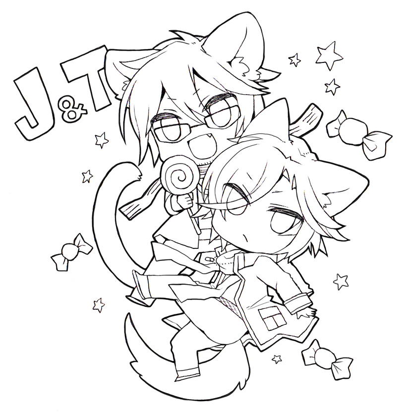 もうホント…なんであんなにかわいいの…つら…よいこのぬりえ(J&T編)ご自由にお塗り下さい〜、線画の改変はだめです…一応w